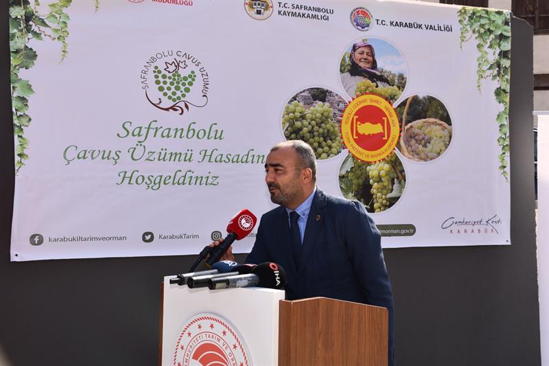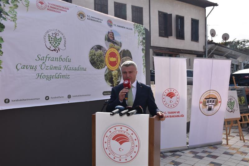 Safranbolu ilçemizin safran bitkisi ve lokumu ile birlikte üç güzelinden biri olan Safranbolu Çavuş Üzümü; sulu ve gevrek yapısı, ince kabuklu ve hoş aroması ile üzümseverlerin vazgeçilmezidir. "Üzümlerin Çavuşu" olarak nitelendirdiğimiz Safranbolu Çavuş Üzümünü bölgemizde ve ülkemizde tanıtmak, gelecek nesillere aktarmak ve üretimini teşvik etmek amacıyla, Safranbolu Kaymakalığı öncülüğünde İl Müdürlüğümüz olarak çıktığımız Coğrafi İşaret Tescil Çalışmaları yolunda son aşamaya gelmiş bulunmaktayız. Türk Patent ve Marka Kurumu'na 24.11.2021 tarihinde yapmış olduğumuz Coğrafi İşaret Tescil başvurumuz 01.09.2022 tarihli bültende yayımlanmış olup, ilan süreci tamamlandığında Safranbolu Çavuş Üzümü Coğrafi işaretli ürünlerimiz arasında yerini alacaktır.