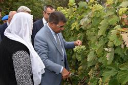 Vali Fuat Gürel ve eşi Özlem Aras Gürel, Safranbolu ilçemize bağlı Yazı Köyünde üzüm yetiştiriciliği yapan Emine Özkan'a ait üzüm bağını ziyaret ederek üzüm hasadı gerçekleştirdi.