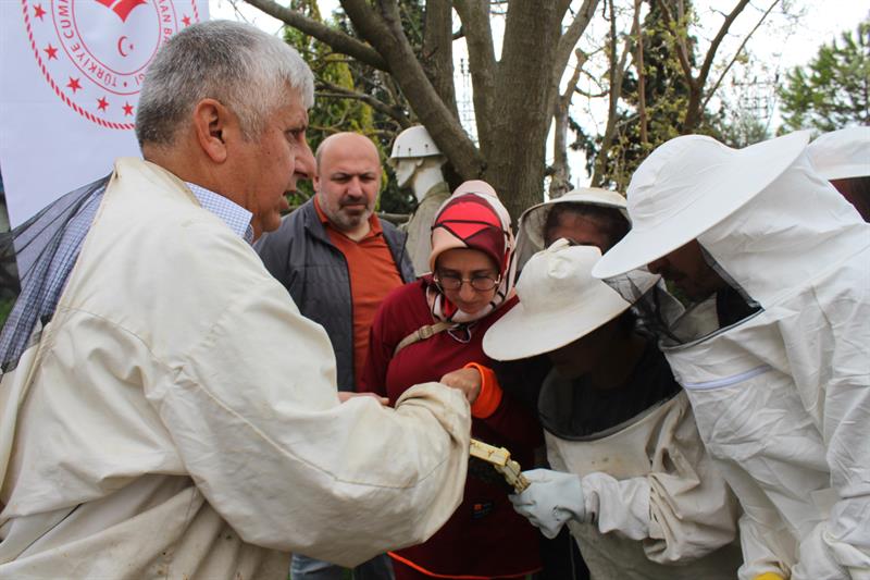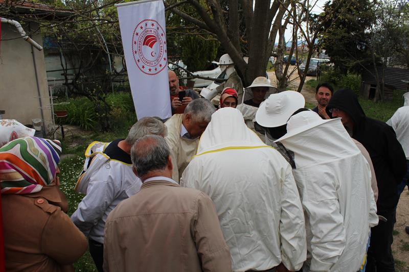 İl Müdürümüz Çetin AYVALIK, İl Müdürlüğümüz ile Halk Eğitim Merkezi işbirliği kapsamında düzenlenen 72 saat süreli arıcılık kursumuzda kursiyerlerimiz ile uygulamalı eğitim için sahaya inen kursiyerlerimizin eğitimine katıldı. İl Müdürümüz Çetin AYVALIK ''katılan kursiyer ve çiftçilerimize, yaptıkları veya yapmayı düşündükleri uğraşı bilinçli ve tekniğine uygun olarak yapabilme arzusuyla gösterdikleri azim ve gayret için tebrik ederek, kurum olarak üreticilerin her zaman yanında olduklarını, istek ve talep olduğu sürece desteklerinin devam edeceğini söyledi.'' Eğitimimizde; kursiyerlerimiz, arı kovanlarının açılması, çerçevelerin kontrol edilmesi, uygulamalı olarak ilaçlama ve besleme işlemlerine bizzat katılım sağladılar, teorik bilgilerini pekiştirdiler. Uygulama eğitiminin ardından, balın süzme işlemlerini görmek amacıyla Karabük Arı Yetiştiricileri Birliğine ait bal dolum ve paketleme tesisi ziyaret edildi.