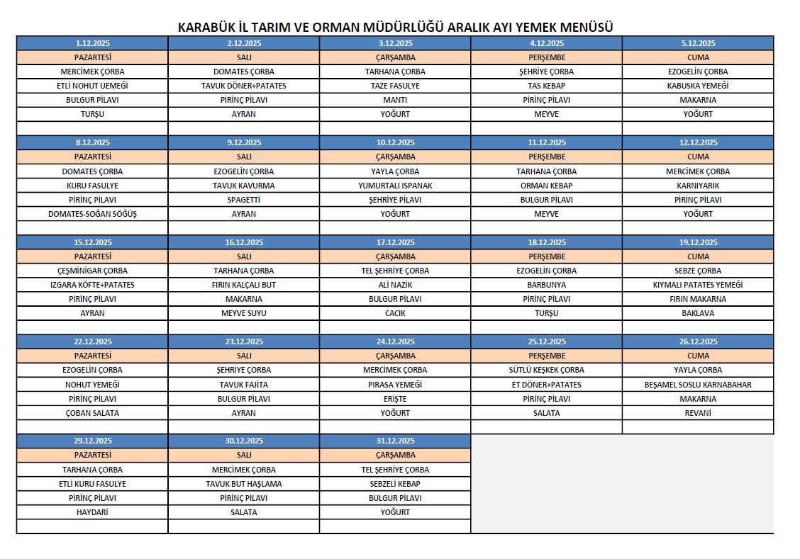 Aylık Yemek Listesi